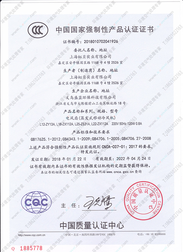 在2018年伊始,凱美恒品牌走上新的發(fā)展軌道,我公司凱美恒品牌冷風機4款型號產(chǎn)品獲得國家強制性3C認證,在國內(nèi)同行中處于領(lǐng)先地位。我公司今后將以更高的標準,做更安全,更穩(wěn)定的產(chǎn)品滿足廣大消費者需求。歡迎新老顧客來電咨詢,為了進一步拓展市場,現(xiàn)誠招全國各地城市合伙人,分銷代理商,財富熱線:4006512590