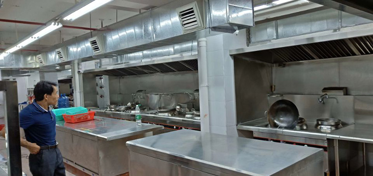 大家都知道廚房在炒菜的時候由于灶臺加溫,熱量極大,大部分餐館的廚師都是熱的大汗淋漓。但是又需要工作,很多人想到的是不是商業餐飲廚房可以安裝空調呢?你見過餐飲廚房安裝空調的嗎?原因是廚房在燒制飯菜時都是強排煙風機將廚房的油煙抽到室外,空調的冷氣也隨之被帶走。明火加溫也是空調根本來不及制冷的一個重要原因。
