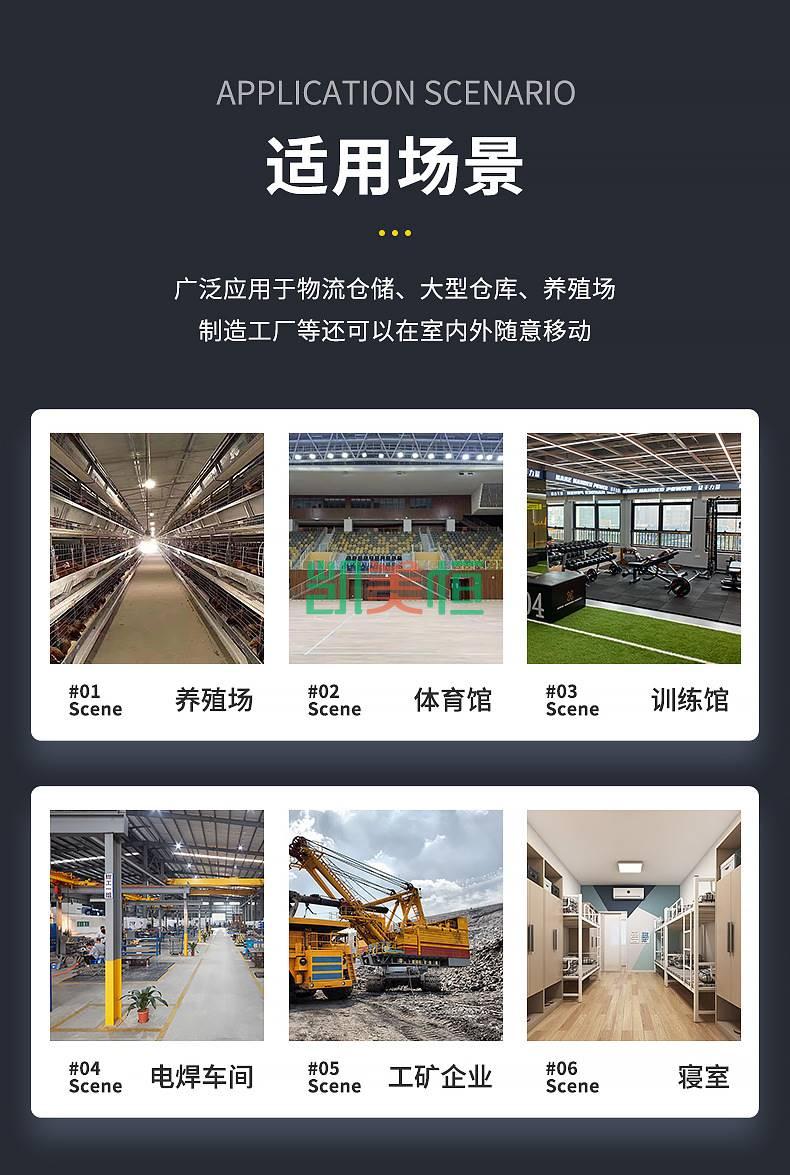 2. 高可靠性:永磁工業大風扇采用全封閉式結構,防護等級高,可在惡劣環境下長時間穩定運行,故障音:永磁工業大風扇采用高精度軸承和優化的風扇葉片設計,運行噪音低,不會影響工作環境。