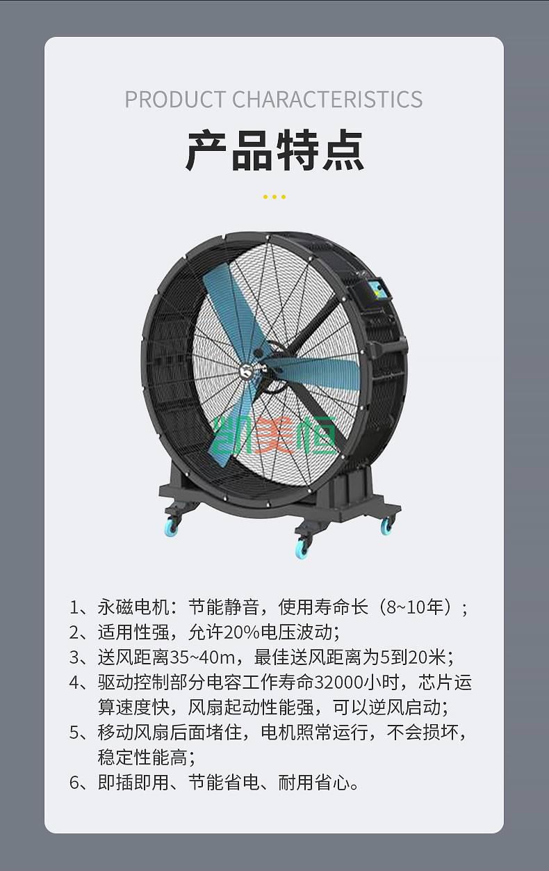 4. 安裝方便:永磁工業大風扇結構緊湊,安裝方便,無需復雜的接線和安裝工作,可快速投入使用。